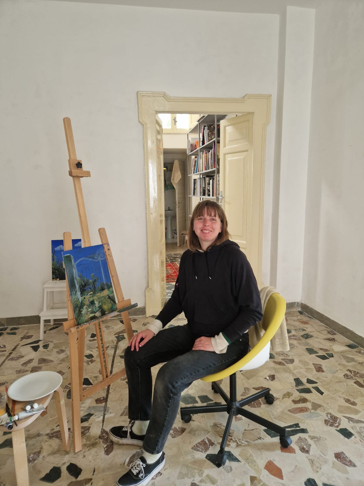 Fleur Helluin, born in 1983 in Caen, creates paintings, sculptures, and performative installations. Her work explores the frictions between the mundane and the spiritual, influenced by artists like Alfred Courmes and Omoda Seiju. Represented by Gallery Red-D in Greece, Helluin has exhibited in France, Germany, Switzerland, the United States, and Belgium. She studied in Caen, Salzburg, and Paris 8 and is a member of the dance-punk group Plateau Repas. Her work critiques the impact of digital culture on contemporary perception, integrating new technologies with classical techniques.