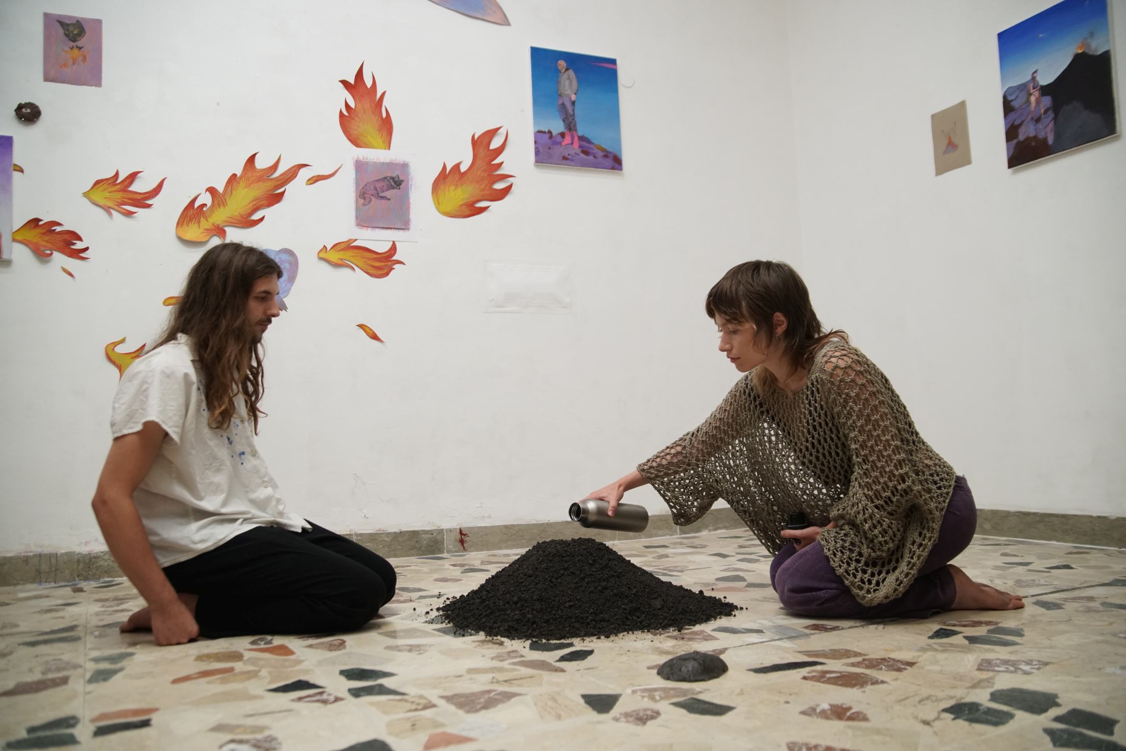 On the 25th of August we showed the paintings realised by Romeo Mestre and a performance about Santa Agata by Maria Casado and Romeo Mestre as well as drawings made by the duo.