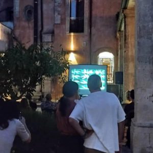 On the 2Oth of July, we presented the work made by our résidents during their residency as well as a short movie made by Tomas Bornot about their work projected in the garden of the palazzo Messina Carpinteri.