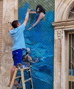 Federico Granell spent a month with us, during which he produced numerous watercolors and pastels. He also painted a fresco on the façade of the bottega, which attracted many people to the opening event.